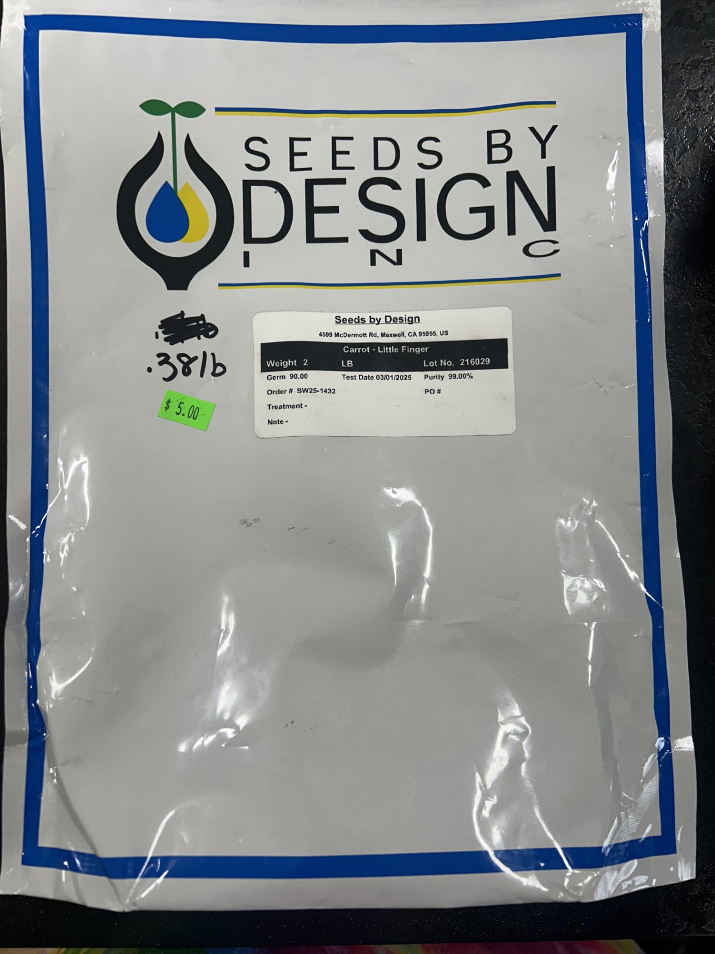 Baby gourmet carrot. Blunt roots, tiny core, smooth skin, and a deep orange color. Developed for canning and pickling whole. Harvest early.